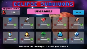 Eclipse Survivors is a challenging bullet-hell / area shooter game where you face thousands of enemies and face powerful bosses. CONFRONT MIGHTY BOSSES! CHOOSE YOUR SKILLS UPGRADE YOUR SHIP Features Select from a diverse range of 20 unique and powerful weapons, each with its distinct advantages and unleash mayhem on your enemies! Customize your ship with an advanced upgrade system and dominate the competition with unmatched power and agility! Confront 5 formidable bosses, each with their unique strengths and weaknesses, and put your skills to the ultimate test!