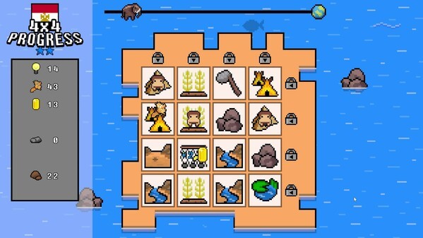 God doesn't play dice games. Because he likes slot machines. 4X4 PROGRESS is a new type of strategic design game. You have to calculate the optimal layout to get a lot of resources and use them to advance your civilization, but the layout you worked hard to make is randomly shuffled the next turn. You can save only part of your layout by spending resources, but it's entirely up to the player how to save your layout efficiently. The player becomes the god of one of 12 different civilizations and guides them from the Stone Age to the modern era. In a small 4X4 panel, you place various tiles such as cities, farmlands, and mines, and depending on the layout, you have to get resources and induce technological development to advance your civilization. Of course, each civilization has its own unique tiles, so you can enjoy different gameplay for each civilization. Defend your civilization from the attacks of enemies that invade at regular intervals, and can your civilization launch a rocket into space? Features A new strategic design game where you have to calculate the optimal layout but control the randomness. Choose your favorite civilization among 12 civilizations and enjoy an alternate history simulation from the Stone Age to the modern era in different ways for each civilization. Various difficulty settings that induce a sense of challenge 70+ historical tiles with 8-bit graphics.