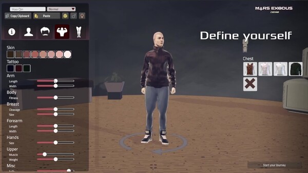Mars Exodus is an open-ended survival sandbox game about surviving in a dying Martian city. You are not special in this world: you are hungry, you are thirsty, you are dirty. This game is inspired by great titles like Kenshi and Deus Ex. The player can carve out their own story, and every playthrough is different in this open-ended sandbox. The Year is 2048 Mars is being run into the ground by a dystopian megacorp called BetterLife. BetterLife controls daily life through labor, food, and policing. You must survive in this cruel world when all odds are against you. Play your way Kill your enemies, betray your friends, steal food from the poor. Immerse yourself in this dark world and decide whether you want to be loyal to BetterLife, loyal to your faction, or loyal to no one. Design your own Character Male, female, tall, short, old, or young - design your character and define their starting skills in this world. You are not the Chosen One Nothing makes you special, you are mortal just like everyone else. But hard effort and a bit of luck might make your playthrough very special. Obey BetterLife Obey your daily training duties at the BetterLife terminals to qualify for soy rations. Or look for your own food if you're adventurous. Build your Base Use your crafted and gathered building blocks to construct a base to protect yourself, your squad, or your entire faction. Craft new weapons and tools to make survival easier. Join a Faction 12 factions to join - from cheese-eating aristocrats to militant authoritarians. You decide who will be friend and who will be foe. Grow your faction by recruiting citizens or even starting families. Develop your Skills Grappling hook, double jumps, ground pound, and air dashes are your friends when moving through the city. Science Simulation Watts, rads, wind speed - consider where to build your wind turbine, whether you should really stand near the nuclear generator, and if you have enough power to get through the night. True Indie No publisher. No investors. No suits telling me what to do - just me making the game for you.