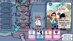 In DOOMSDAY, you are a simple scientist with a simple dream - ruling the world, with the help of a giant laser cannon mounted on a spider-legged robot. Over the course of 15 levels, you'll need to defeat the pathetic fools standing between you and world domination, from teenage bullies to military commandos to forest witches to the mighty Kongclops. With your inventory of unique components and powerful artifacts, you’ll assemble the ultimate doomsday device and demolish everyone in your path. EXCITING CARD HIJINKS DOOMSDAY is a single-player card-slinging roguelike adventure that will feel familiar if you've ever played deck-building games like Magic: The Gathering, Slay The Spire, Balatro or Marvel Snap. You’ll find, however, that the gameplay is less dependent on combat, and more focused on synergy between your cards and artifacts as you build your superweapon from scratch again and again. The goal of each level is to gain enough points to overcome a powerful enemy in your path. Over the course of seven turns, you’ll play cards that increase your power - crazy component cards that become pieces of your doomsday device, or surprising action cards that can make those pieces stronger. Each enemy has a unique effect that can trip you up, and you'll need to make use of tactics that are chaotic, random, some might even say "mad"...but by optimizing your deck and learning the weaknesses of your enemies, you'll find a method in the madness on your way to victory. CRAFT THE ULTIMATE SUPERWEAPON Between levels, you'll have the chance to add and remove cards from your deck, obtain special artifacts, or even go exploring on a side quest. You can choose from over 150 cards and 100 artifacts to make your deck more powerful….and the more you play, the more cards and artifacts you’ll unlock with rare, game-breaking abilities. If you've never played strategy card games and find all this intimidating...don't worry, there's a tutorial mode that will walk you through the ins and outs of the game! The rules are easy to pick up, each round only takes a minute or two, and with a little math and a little luck, you'll find yourself racking up points and laying waste to cities before you know it. FEATURES: Fast paced card-based gameplay Master chaotic tactics Every run is unique Three difficulty levels plus a tutorial mode A dozen puny enemies to take down Hundreds of cards and artifacts to customize your weapon Over 50 exploration events with uncommon rewards Original art by Flynn Nicholls Original soundtrack by Dylan Walker and Josh Richmond Unlockable cards, artifacts, and special runs for extra replayability. Track your high score on the stats screen Discover achievements on Steam ONLY! Support indie games with this labor of love from a three-person team!
