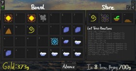 Cause reactions, discover new elements, and gain gold for your efforts in Elements For Money! Every turn, you can move your elements around and get a new one from the shop. Adjacent elements can react to form new elements or provide gold bonuses for being next to other elements. Get enough gold before payment to stay in the game, and obtain a high total gold count to get as high of a rank as you can. Features 90+ elements to discover! ~1000 reactions to cause! Playable with mouse and/or keyboard (support for both)! A randomized shop for roguelike gameplay! A variety of strategies to get high profit! Gold to gain!