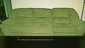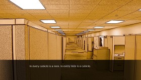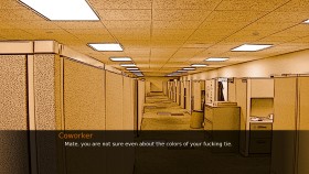 Deep in the never-changing autumn, surrounded by the tall buildings of the city. Men in suits move like shadows between the asphalt bridges. Can the songs of their childhood and the sweet taste of a drink make them forget the lies they find in a melancholic sunset? A short almost-linear novel game written for the common man. -Reading time of 5-10 mins. -Almost no sounds, or music. Disturbing noise loops. -Graphics picturing the loud emptiness of a city full of people.