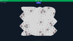 A variant of the classic game Minesweeper, where the grid is irregular. On a regular grid, each cell has 8 neighbors, but in this case, they can have between 6 and 10. This leads to more difficult games, as you can't build the same mental tricks to solve where the mines are. And the grid is procedural and unique on each game. The game opens on beginner mode, with a small grid. You can change the difficulty to intermediate or expert, which will create larger grid. You also have a custom mode, where you can go crazy. Guarantied no luck involved, only logic: When a level is generated, a solver goes through it first, and tries to complete it using only the clues and number of mines remaining. If it gets stuck it, the level is updated accordingly, until the solver manages to complete it. This guaranties that when you start a level, you can always finish it yourself without having to rely on luck.