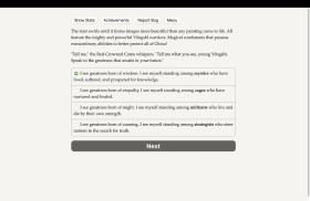 Fulfill your epic destiny in mythic ancient China! Lead armies, wield magic, and put an emperor on the throne - or become the emperor yourself! Tale of Two Cranes is a 750,000-word interactive epic historical fantasy novel by Michelle Balaban and Stephanie Balaban. It’s entirely text based, without graphics or sound effects, and fueled by the vast, unstoppable power of your imagination. The mighty Qin dynasty has fallen. As the land breaks into warring states, everyone must choose their side in the growing civil war. Within this epic turmoil, you have been chosen to fulfill a grand but mysterious destiny. You are a Yǒngshì warrior, bonded with a heavenly spirit that grants you magical powers, and trained since childhood in the arts of battle. Your spirit is greater than any Yǒngshì has ever been: you are the mortal link to the Red-Crowned Crane, a mystical patron unique among all of the heavens…or so you thought. As war rises around you, you discover that there is a rival: Chan Ming, bonded to the Other Crane, is the only person who could ever match your power - or he might even exceed it. Your mystical power can sway the course of the war and determine who will be the next emperor. Whose faction will you choose: Liu Bang, a charismatic lord beloved by the people; or Xiang Yu, a veteran of war respected by the military? Can you navigate the politics of the Imperial court, or will you gather your power in seclusion at your country estate? When China’s enemies encroach from the northern steppes, can you negotiate with them to call a truce - or even win them over as allies? Will you prove your loyalty to the new Emperor, or will you betray your allies at every turn? Uncover conspiracies of spies, trace the source of rebellions and mutinies, blackmail an Empress, marry into the Imperial family to become the power behind the throne - or even become the Emperor yourself! And through it all, cross paths and swords with your rival, the Other Crane. Will you defeat him in an epic battle for the ages, or will you join him and create the most powerful mystical partnership the realm has ever known? Play as male, female, or nonbinary; gay, straight, bi or asexual. Find romance amongst your six closest allies or opt for an arranged marriage. Choose from four magical classes: mystic, militant, sage or strategist. Unravel the mystery of your mystical link to the Crane and discover the truth behind your unique connection to a fellow warrior. Fight epic battles across a landscape inspired by the Warring States period of ancient China. Build your personal power, customizing your estate to create a place specializing in military training, agriculture, spiritual enlightenment, scholarship, commerce, and more! Master the Imperial court to propel yourself into the administration, nobility, or even to become ruler of all China! Your destiny calls, and a new dynasty awaits!