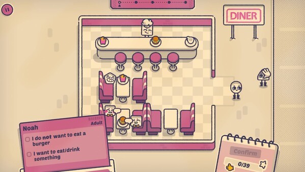 靠窗还是靠走道?台子还是桌子?自己坐在角落还是成为聚会的灵魂?《这个座位有人坐吗?》的世界里,你需要根据大家的喜好安排他们的位置。这款逻辑益智游戏气氛轻松、没有压力,谁坐在哪里,全由你来决定。 电影院、拥挤的公交车、婚宴、窄小的出租车,每个场景都会引入具有特定偏好的新角色。聚会有些客人鼻子很灵,会不愿意坐在喷了太多古龙香水的陌生人旁边。公交上有些乘客困极了想睡一觉,就不会愿意旁边有人大声功放音乐。仔细惯常现场的所有角色,就能让大家都开开心心! 纳特希望进入演艺圈发展,在银幕上看到跟自己一模一样的一个形状之后,生活发生了翻天覆地的变化。这一次发现让纳特踏上了全球之旅,就是为了认识那个主角,还有想办法融入行业。从一座城市到达另一座城市,感受纳特的心路历程,每座城市都有不同的关卡、角色和魅力。 为挑剔的角色选择合适的座位 探索角色各不相同的特点,有的亲切,有的古怪,还有的介于两者之间。 没有计时,也没有积分榜,破解谜题,享受那份满足。 有公交车,也有宴会,推进游戏,就能陆续解锁有趣的新场景!