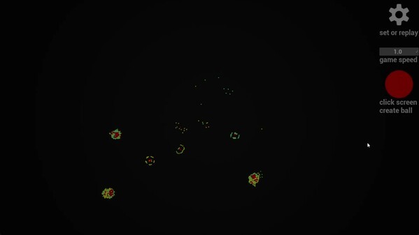 这是一个简单的模拟器,通过简单的物理规则模拟生命的形成。在这里,你可以用物理性质来定义不同的球,让它们相互影响,然后形成类似生命的东西。!!! 如果你想重新开始,点击设置按钮,点击播放!!